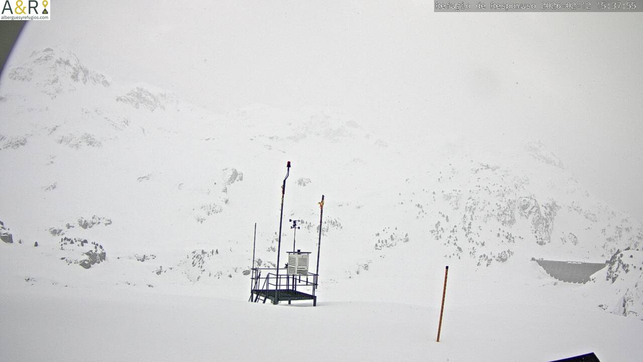 Desde el pasado lunes nos ha afectado la borrasca Nils, con una masa de aire tropical y marítima, que ha provocado fuertes precipitaciones y subida de temperaturas. Se han registrado 50 mm el martes y 25 mm el miércoles. Debido a un notable ascenso de las temperaturas, gran parte de esa precipitación se produjo en forma de lluvia hasta una altura de 2.500 m o más. En Sarrios, a 1.800 m, la temperatura máxima registrada el martes fue de 8ºC y la mínima de 0ºC. Durante la noche y la mañana de hoy las temperaturas han vuelto a descender hasta cerca de 0ºC y se han producido precipitaciones débiles en forma de nieve, con la cota de nieve a 1.500 m.